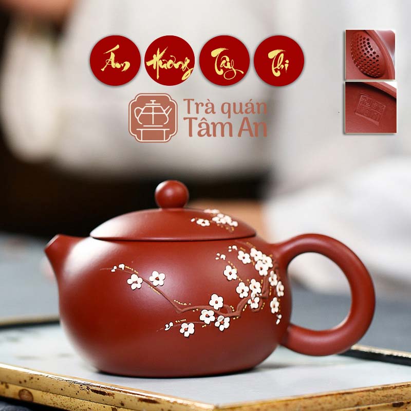 là một trong những loại ấm trà cổ điển, truyền thống và phổ biến trong số rất nhiều kiểu dáng của ấm tử sa. Bên ngoài ấm còn được trang trí với cành hoa mai được đắp nổi một cách tinh tế, đem lại một vẻ đẹp tươi sáng, một mùi hương ẩn tàng nhưng quấn quýt dài lâu.